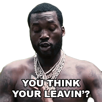 Meek Mill, shirtless and wearing chains, asks "You think your leavin'?" in this expressive sticker.