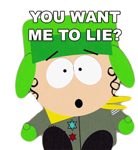 Kyle Broflovski from South Park asks, 'You want me to lie?' with a wide-eyed, surprised expression, perfect for expressing disbelief.