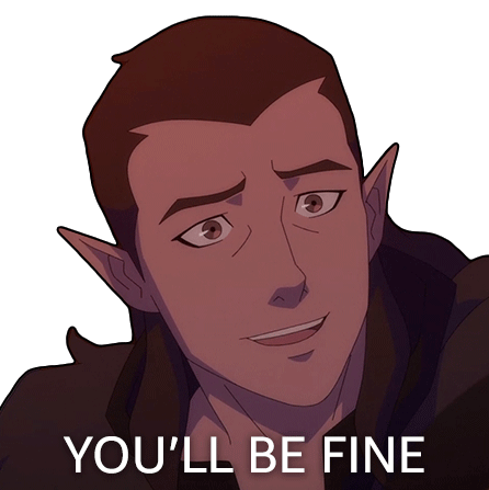 Vax'ildan from The Legend of Vox Machina offers reassurance with a gentle smile and the comforting words, 'You'll Be Fine'.