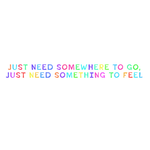 Animated lyrics from Morgxn's song 'Young & In Love (Y&IL)', featuring the lines 'Just need somewhere to go, just need something to feel'.