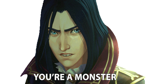 Caitlyn Kiramman from Arcane, with a stern expression, declares 'You're a monster' in this animated sticker.
