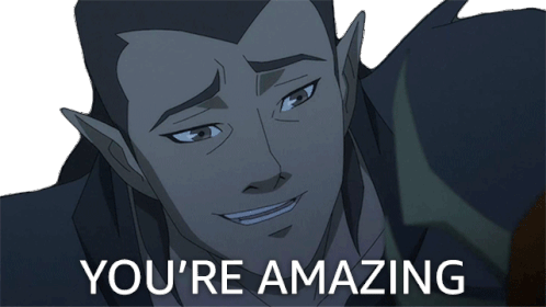 Vaxildan from The Legend of Vox Machina smiles warmly, telling someone they're amazing.