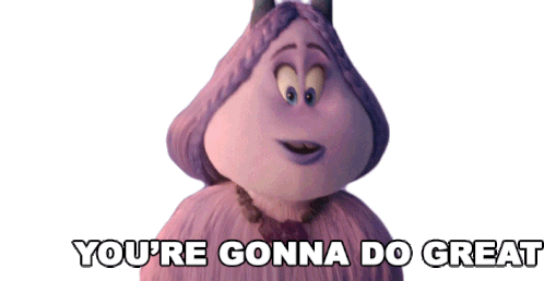 Meechee from Smallfoot, a purple furry character, smiles and encourages with the text "YOU'RE GONNA DO GREAT".