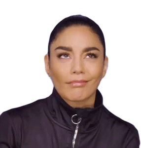 Vanessa Hudgens rolls her eyes and gives a dismissive look, conveying annoyance or disinterest with a "Duh" attitude.