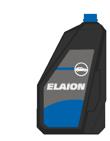 A black and grey bottle of YPF Elaion motor oil, featuring a car icon and blue liquid, representing energy and competition.