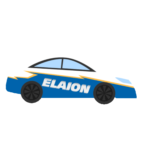 A stylized blue and white race car with 'ELAION' prominently displayed on its side, representing YPF's competition brand.