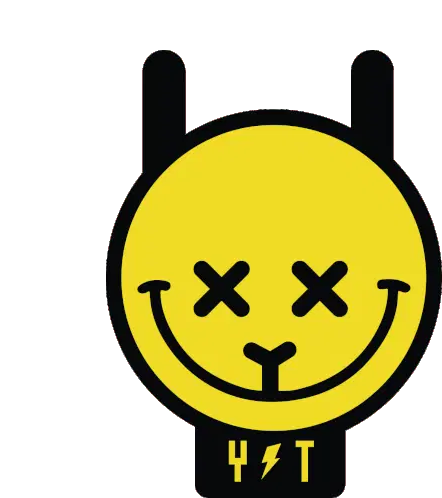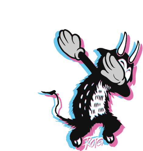 A furry black cartoon devil monster with horns performs a dab, featuring a cool glitch effect with pink and blue outlines.