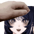 a close up of a person 's hand on a girl 's head .