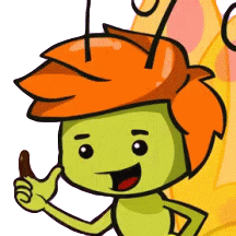 A green Galinha Pintadinha character with orange hair happily licks its finger, indicating something delicious and yummy.