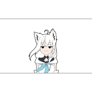 Shirakami Fubuki, the white-haired kitsune from Hololive, peeks from the bottom and sways side to side.