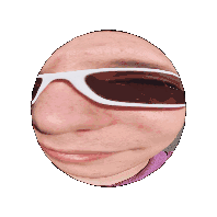 a pixelated image of a woman wearing sunglasses and a purple shirt