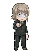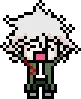 Yuri Kagarin, the pixel art girl from Danganronpa/SDRA2, with a hat and hand on her head.