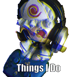 Yuyuko Touhou Fumo plushie with headphones and controller, featuring 'Things I Do' gaming meme text.
