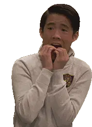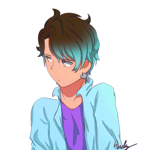 Zackyflipper or Wackyflipper, an anime boy, blinks and blushes with hearts, showing affection or shyness.