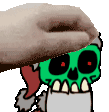 Zanta Claws from Eddsworld, depicted as a skull with a tongue sticking out, held by a hand. A quirky animated sticker.