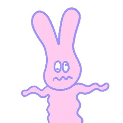 A zany pink cartoon creature with a worried expression wiggles its wavy body and arms in this animated sticker.