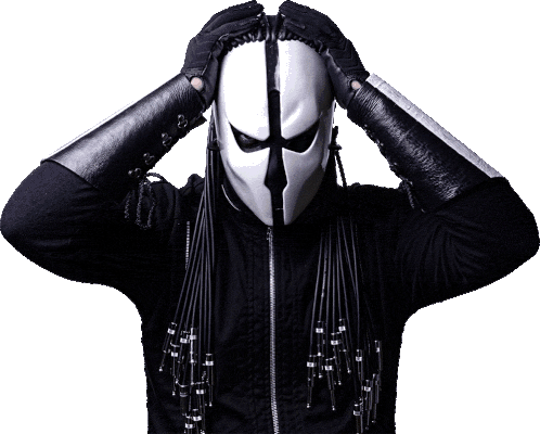 Zardonic, wearing his signature black and white mask, reacts with hands on head, displaying 'WTF!?' in a speech bubble.