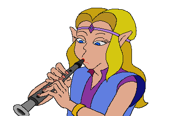 Princess Zelda from the CD-i games plays her flute, then stops and smiles in this iconic meme sticker.