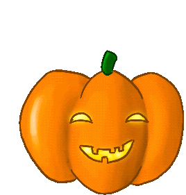 A Halloween pumpkin carved with a Korok face from Zelda, splitting open in an animated sticker.