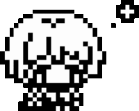 Zenitsu Agatsuma from Demon Slayer in a black and white pixel art sticker, deep in thought with a plus sign bubble.