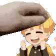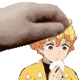 A cute animated sticker featuring Zenitsu Agatsuma from Demon Slayer getting gentle head pats while holding a delicious donut.