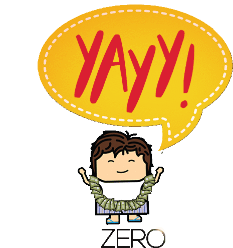 Bauua Singh from Zero movie celebrates with a 'YAYY!' in a speech bubble, showing excitement and happiness.