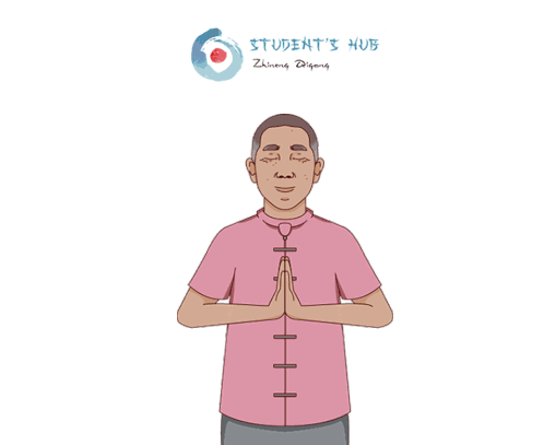 A man demonstrates Zhineng Qigong movements to strengthen the Qi field, reflecting natural healing and TCM principles.