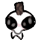 Pixel art animation of Zhongli blinking, a stylized character head with large eyes and a dark top.
