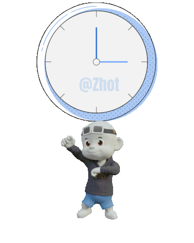 a cartoon character is standing in front of a clock that says @zhut