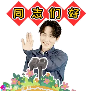Chinese actor Zhuyilong, also known as Longge, waves his hand and says hello with floating flower graphics.