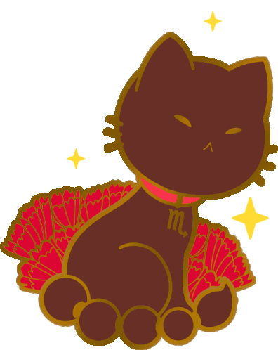An adorable kawaii cat sticker representing the Scorpio zodiac sign, featuring a sparkling flower. Created by Cosmeek and Shourimajo.