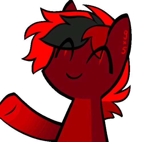 Zom Rosefall, a red and black My Little Pony character, waves with a friendly gesture.