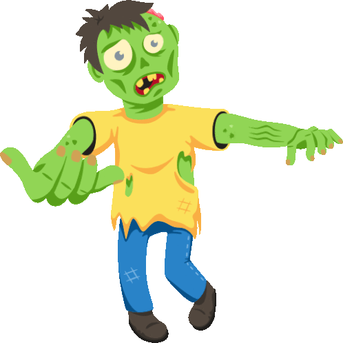 a cartoon illustration of a zombie with a yellow shirt and blue jeans