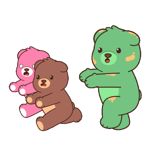 three teddy bears are standing next to each other with their arms outstretched in a cartoon