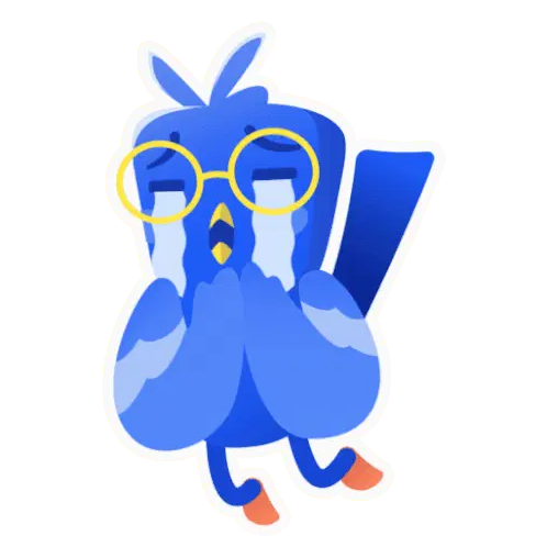 A blue piggy bank character wearing a blue hat, shedding tears with a sad expression.