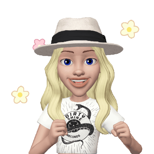 A cute avatar with a hat and "Dirty Shine Records" shirt performs a happy, wiggling dance, surrounded by floating flowers.
