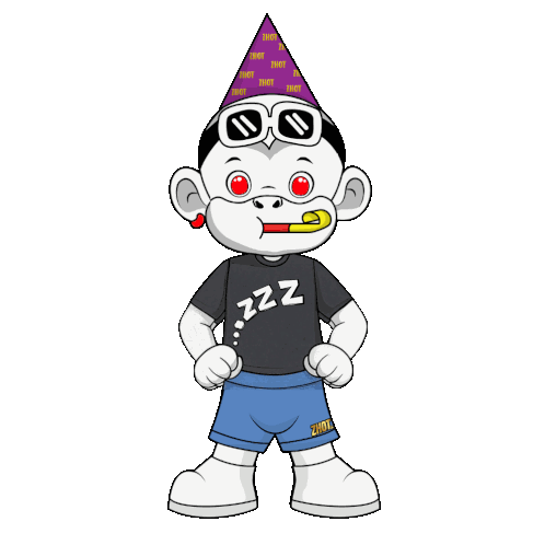 a cartoon character is wearing a party hat and a shirt that says zzz on it
