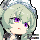 A pixel art anime maid with green hair and purple eyes reacts with wide-eyed shock and an open mouth.